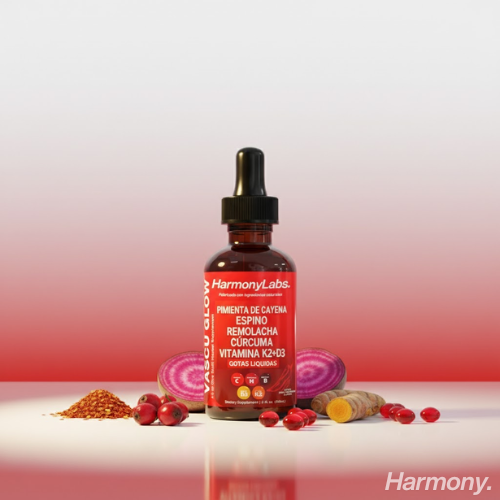 Es un suplemento natural líquido que combina extractos de pimienta de cayena, espino, cúrcuma, remolacha y vitaminas D3 + K2, formulado para mejorar la circulación, equilibrar la presión arterial y aumentar la energía diaria.